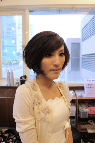 瘦巴巴小姐的髮型原是服貼感的俐落髮型,但她臉很瘦,髮型燙捲後再刮澎