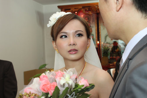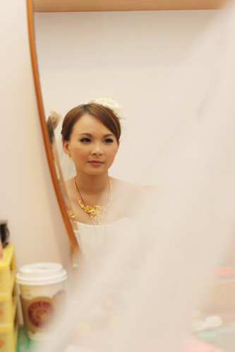 拜完祖先時 哭的鼻子紅紅的新娘 , 感情一發不可收拾 在接下來的拜別父母時 又流下女兒淚…可愛新娘 哭到鼻子紅紅的更Cute, 好想在她臉上加幾條鬍鬚喔.. 一定爆可愛!(新娘會手刀砍我)