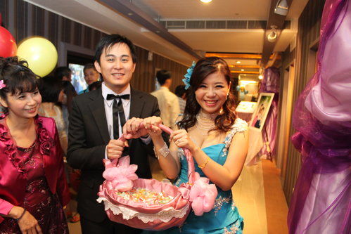 原訂只有二套婚紗店提供的禮服 ,一早到小魚家時,小魚說媽媽很熱情,家裡第一次辦喜事,又是長女,媽媽偷偷去訂了一套價格破千的禮服送給小魚!