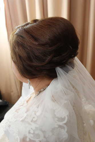 敬酒造型,幫小玉設計盤髮,搭配半寶石耳環