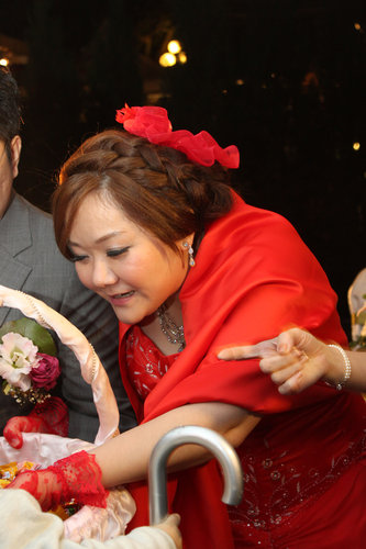 餐廳配給新娘的小管家還蠻貼心的,會進房關心進度,但是新娘換造型前偶會想如廁小解跟親友小寒喧或交待事宜,這我沒辦法控制時間的嘛,造型時間會被縮短一點,但這天仍然是很順利的完成好玩的新娘造型任務!