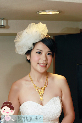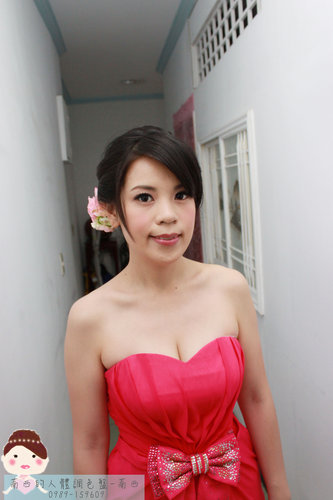 潔 皮膚白泡泡幼咪咪,個子雖小,但身材啵棒,為了文訂大喜,原本的問題肌膚在皮膚科專業醫師建議下,獲得改善,保養臉部功課,照三餐在趕工的,這天的膚況好的不得鳥,美呆了!新娘子對造型沒太大意見,她說了”我要很正點,造型就交給妳處理”