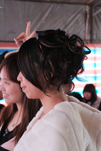 因為是 短髮新娘,捲髮要一根根挑上去,澎湖的風很強