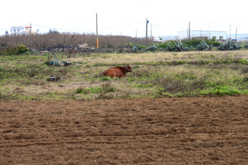 牛!!我看到真牛..很冷的天牠還是很有義氣的在田中央