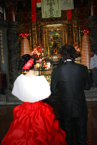 來介紹一個特別的習俗,在澎湖當地結婚時,要到廟裡把神明請回家,待婚禮結束後,再把神請回廟裡.