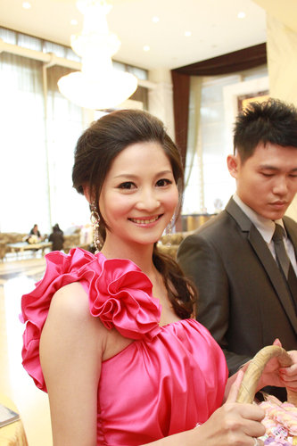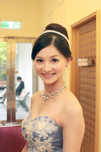 笑容甜美可人的 菱,很適合素雅的造型,新娘子喜歡典雅的造型