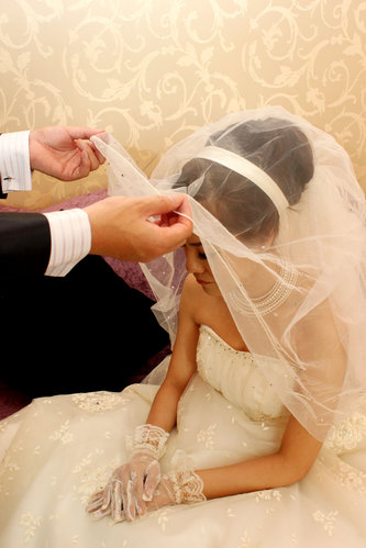 當天新郎忙進忙出的,被捉進來掀頭紗